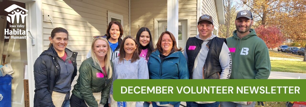 We are in the homestretch at our Wai Yin Chan and Linda “Digger” Barrow Women Build in Coralville. Our construction crew and volunteers have been hard at work installing kitchen cabinetry, finishing the trimwork, and completing the final installation of interior doors. Enjoy cleaning, or still looking to help with this project? Act fast, there are only a handful of volunteer opportunities left to volunteer on this year’s Women Build project! Our Aiden Street home build is making GREAT progress in Iowa City. A BIG thank you to everyone who has volunteered at this home. Because of you, we were able to complete all of the siding! There will be a pause on this build site until the week of January 15th. Volunteer shifts are available every Thursday, Friday, and Saturday, with morning sessions (8:00 am - 12:00 pm) and afternoon sessions (1:00 pm - 5:00 pm). Interested in organizing a group build for next year? Contact sammi@iowavalleyhabtitat.org |